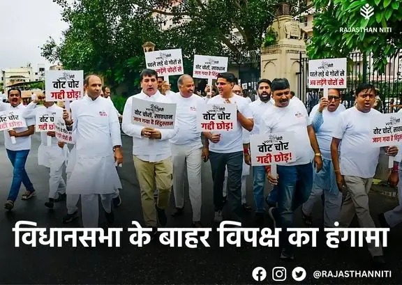 Rajasthan Assembly Monsoon Session: जयपुर। राजस्थान विधानसभा का मानसून सत्र 1 सितंबर को शुरू हुआ, लेकिन पहले ही दिन सदन में जमकर हंगामा हुआ। विपक्षी कांग्रेस विधायकों ने सत्तारूढ़ भारतीय जनता पार्टी पर वोट चोरी का गंभीर आरोप लगाते हुए नारेबाजी की, जिससे सदन का माहौल गर्म हो गया।