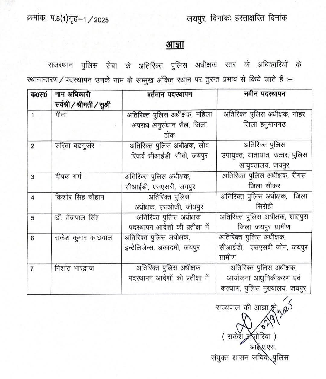 Rajasthan IPS reshuffle