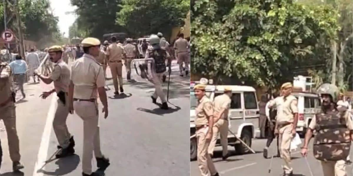पुलिस ने हल्का बल प्रयोग कर हटाया
