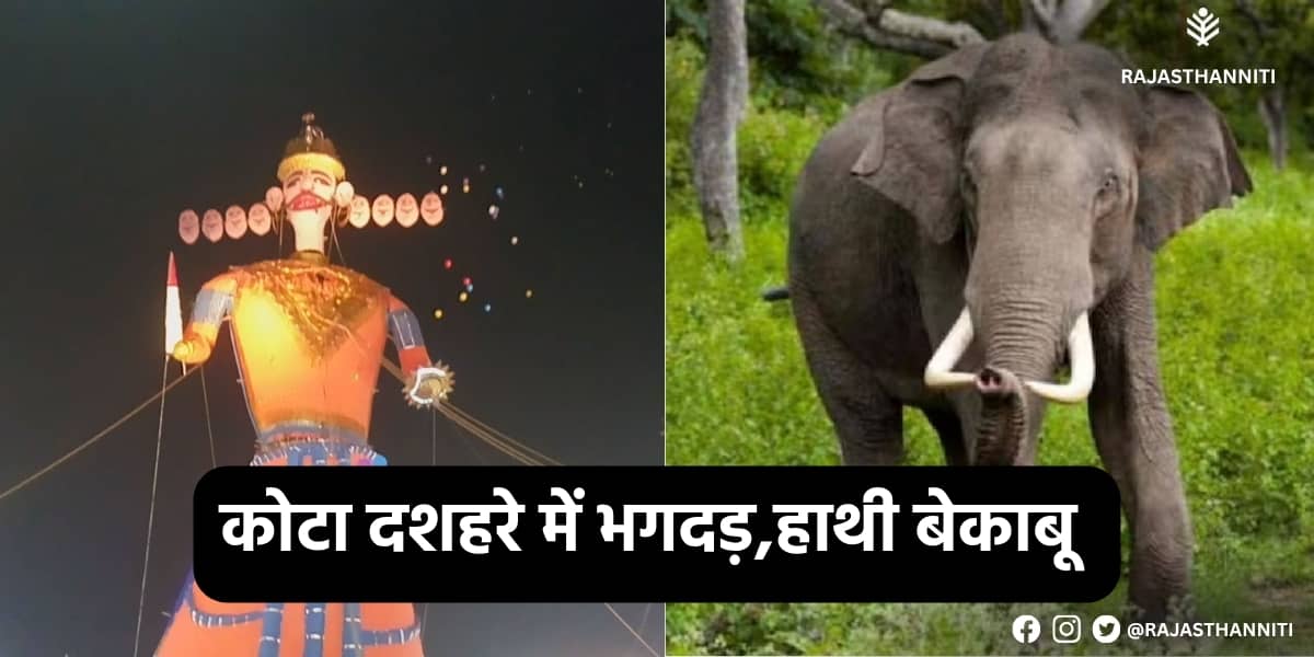 कोटा में रावण दहन के दौरान दशहरा मैदान में शोभा यात्रा में शामिल एक हाथी बेकाबू हो गया। हाथी पटाखों की आवाज से डरकर घबराया और कुछ देर के लिए भगदड़ मच गई। घटना उस समय हुई जब ग्राउंड में भगवान लक्ष्मीनारायण की सवारी पहुंची थी। हालांकि कुछ ही पलों में महावत ने हाथी को काबू में कर लिया। इस दौरान का वीडियो कई लोगों ने कैमरे में कैद कर सोशल मीडिया पर शेयर किया।