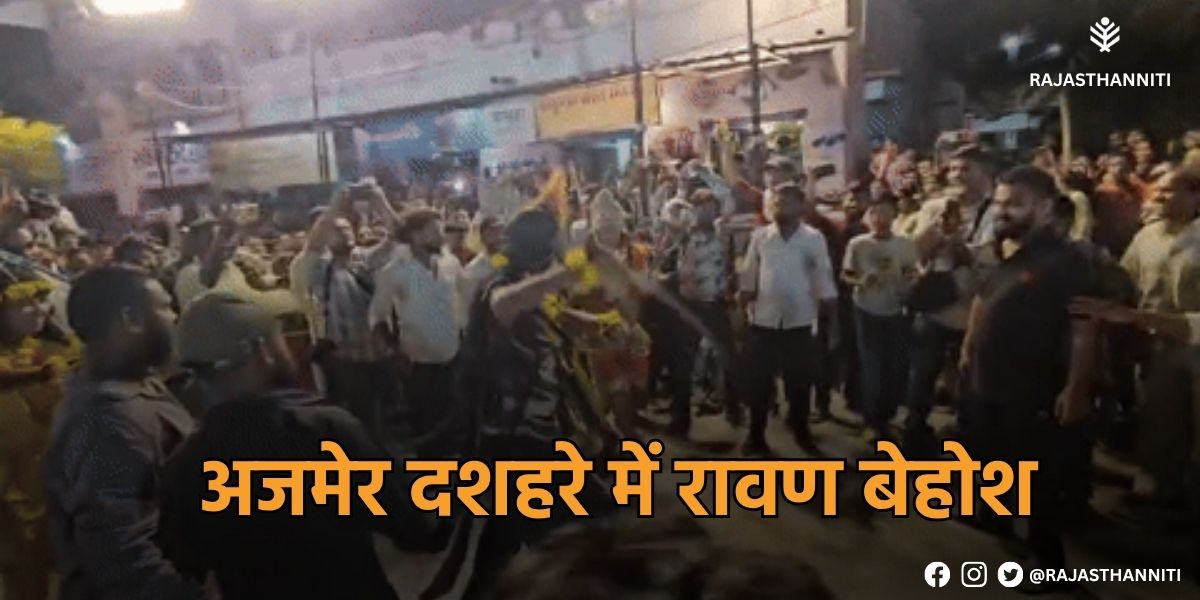 दशहरे के मौके पर अजमेर के अशोक नगर भट्टा में बाल रामायण मंडल द्वारा आयोजित महोत्सव के दौरान रावण का किरदार निभा रहे नवनीत युद्ध के दौरान बेहोश हो गए। 65 फीट का पुतला आकर्षण का केंद्र था, लेकिन चर्चा उस समय हुई जब नवनीत को कंधों पर उठाकर सुरक्षित स्थान पर ले जाया गया। हर साल की तरह इस बार भी राम-लक्ष्मण से युद्ध का दृश्य प्रस्तुत किया गया था।