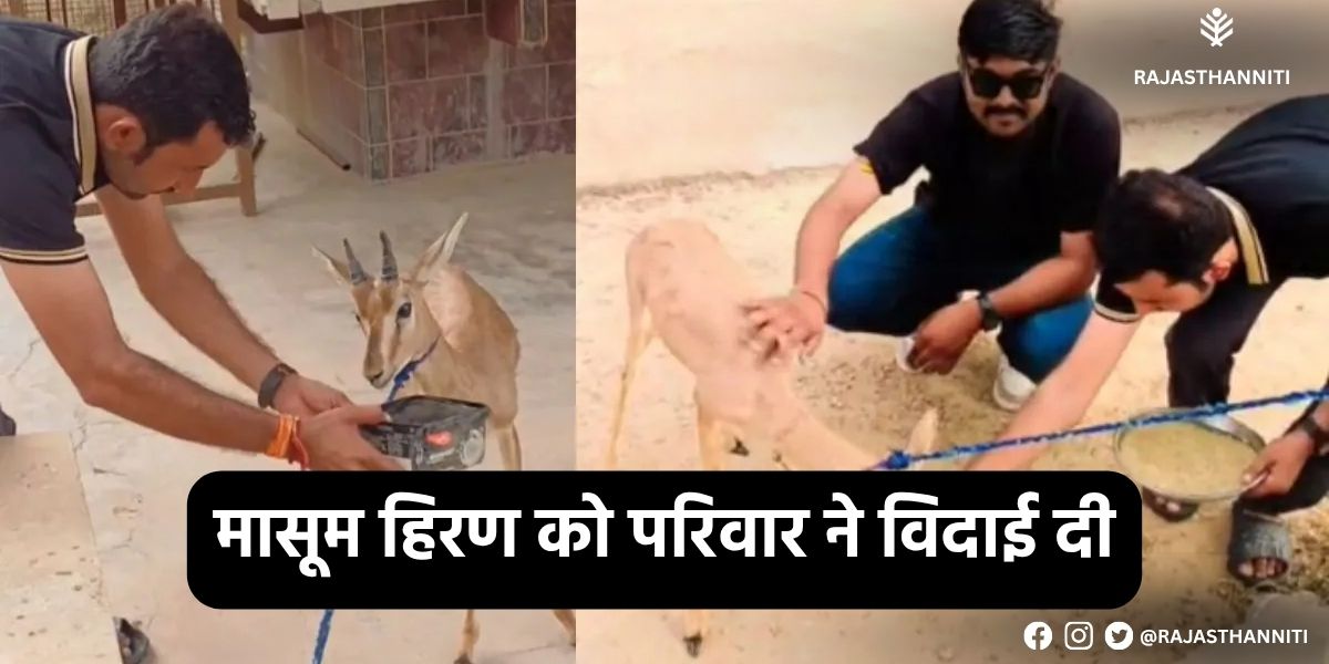 राजस्थान के जिले के सरहदी गांव करड़ा में एक परिवार ने आठ महीने तक एक हिरण के बच्चे को अपने परिवार का सदस्य मानकर पाला। अब उसे उसके असली घर, यानी जंगल में वापस छोड़ दिया गया। करड़ा गांव के निवासी महेंद्र सिंह सोढ़ा ने बताया कि उनके छोटे भाई कुंदन सिंह को लगभग आठ महीने पहले जंगल में एक हिरण का बच्चा दिखाई दिया। अगले दिन जब कुंदन उसी रास्ते से गए, तो उन्होंने देखा कि बिन मां का हिरण का बच्चा वहीं पड़ा हुआ था। इसके बाद कुंदन ने 15 दिन के मासूम हिरण को घर लेकर आकर पालना शुरू किया।