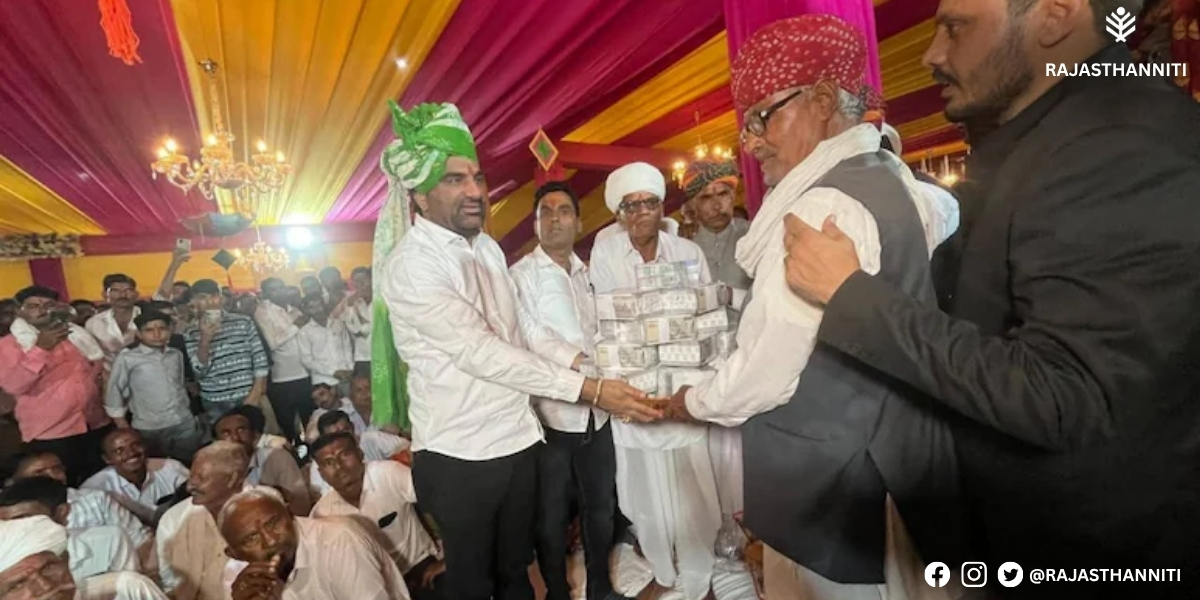 बीकानेर जिले के नोखा कस्बे में भांजों की शादी के दौरान मामा द्वारा भरा गया मायरा चर्चा का विषय बना हुआ है। 1 नवंबर की शाम को गिरधारी और जगदीश गोदारा के बच्चों की शादी में यह रस्म बड़े धूमधाम से निभाई गई। सीनियाला गांव के भंवर सिंह और जगदीश लेघा ने अपनी बहन मीरा के बच्चों के विवाह में करीब 2 करोड़ रुपये का मायरा भरा। इसमें एक करोड़ 11 लाख रुपये नगद, सवा किलो चांदी और 31 तोला सोना शामिल था, जिसकी कुल कीमत लगभग 45 लाख रुपये बताई जा रही है। इस भव्य मायरे का वीडियो सोशल मीडिया पर वायरल हो गया है, जिसे लोग यादगार और भावनात्मक क्षण बता रहे हैं।