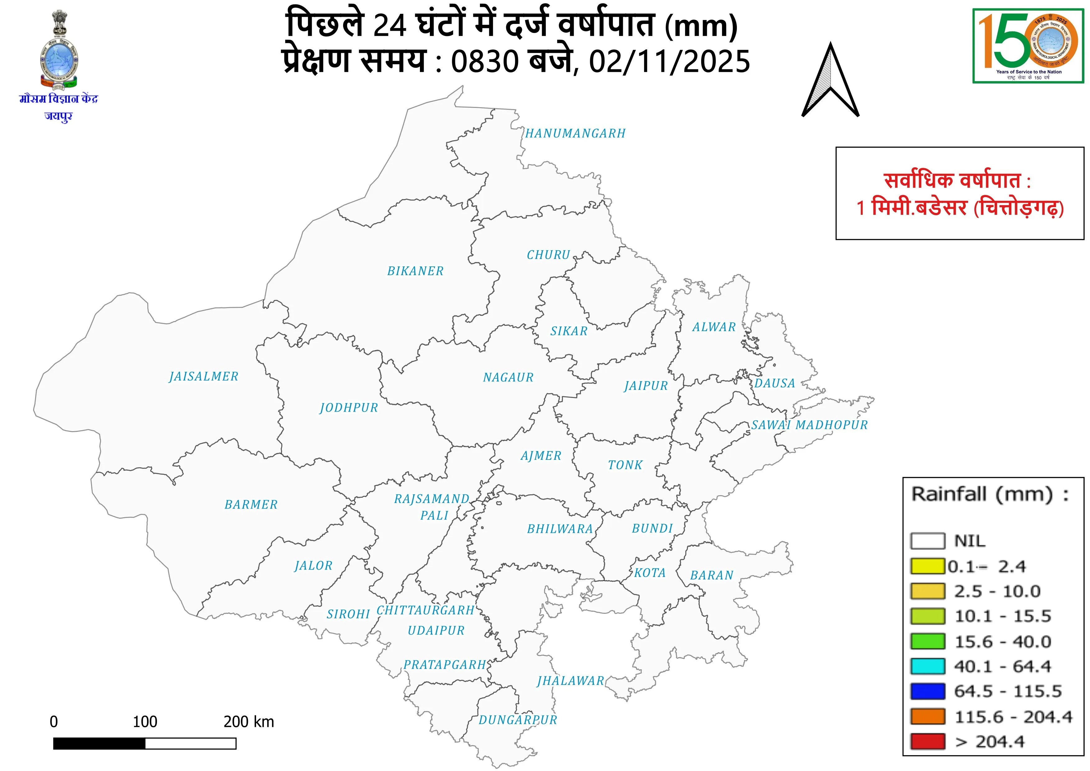 पिछले 24 घंटे में प्रदेशभर का मौसम शुष्क रहा। जयपुर, अजमेर, कोटा, बीकानेर, जोधपुर सहित ज्यादातर शहरों में दिनभर आसमान साफ रहा और धूप खिली रही। कई शहरों में तापमान में हल्का उतार-चढ़ाव देखने को मिला।