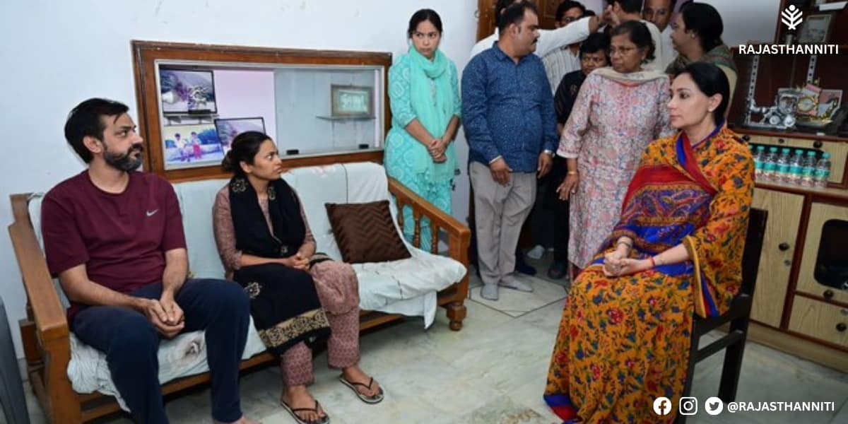 मंगलवार को उपमुख्यमंत्री दिया कुमारी मुरलीपुरा स्थित अमायरा के घर पहुंचीं, जहां उन्होंने परिजनों से मुलाकात कर घटना की जानकारी ली और संवेदना व्यक्त की। उन्होंने कहा कि “ईश्वर अमायरा की आत्मा को शांति दें और परिवार को इस कठिन समय में साहस प्रदान करें।